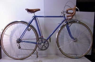 東京は中野、原サイクルさんでフルオーダーした650Aランドナー。工房は恐らく東叡社とのこと。シマノ・スギノ・マファックで固めた実走向けのアッセンブリ。これで北海道を走りました。使い込まれた革サドルの色合いが走りの証ですね。ニューサイの広告にも掲載されました。